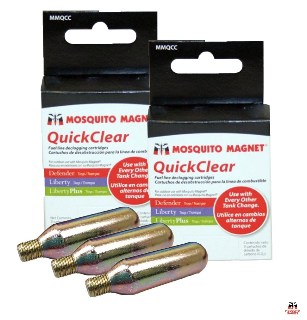 Для оптимальной работы уничтожителя комаров Mosquito Magnet необходимо использовать картридж быстрой очистки после каждой замены баллона с пропаном, то есть не реже, чем раз в 21 день. Если этого не делать, ловушка может засориться продуктами каталитического преобразования пропана. Также рекомендуется прочищать уничтожитель перед тем, как убирать его по окончании сезона комаров, чтобы избежать уплотнения загрязнений, а также перед весенним запуском ловушки в работу, чтобы прочистить загрязнения, которые могли образоваться в процессе зимнего хранения.